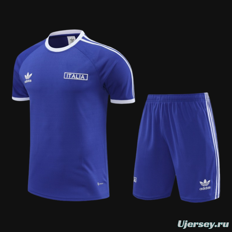 2024 Italy Blue Cotton Short Sleeve Jersey+Shorts