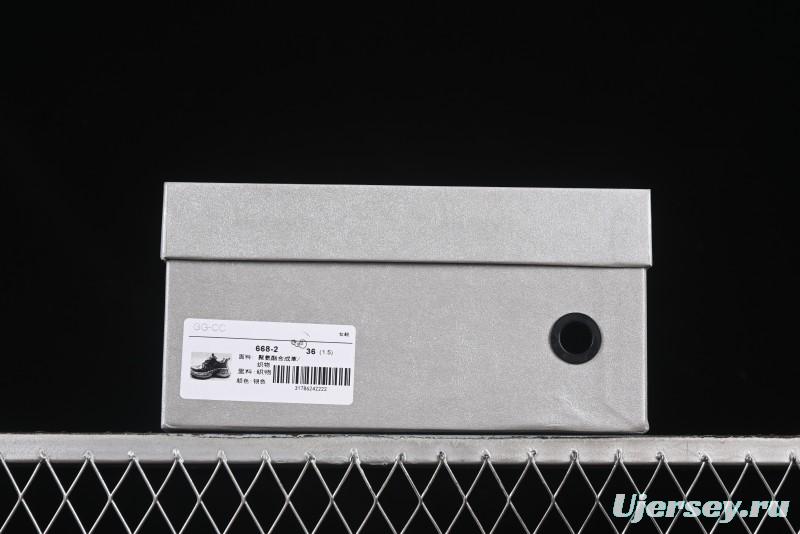 The GG-CC 25ss New Platform Chunky Sneakers combine a bold 7CM height increase with an irregular design, ideal for fashion-forward individuals seeking a trendy and comfortable footwear option. The 668-2 Silver model delivers a perfect blend of style and functionality, making it a versatile choice for various occasions.