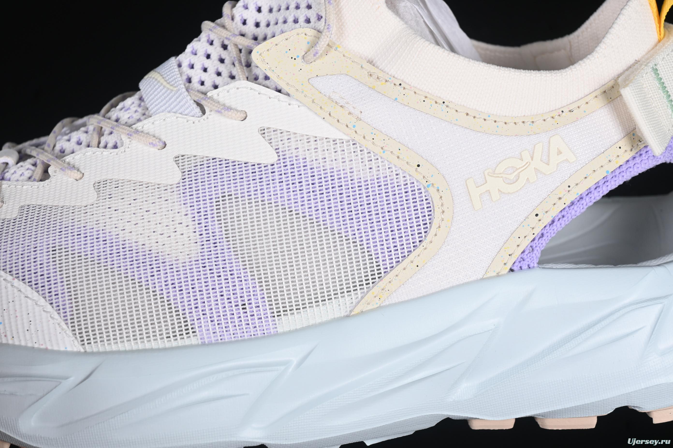 Elevate your outdoor footwear game with the HOKA Lightweight Trail Sandal. Designed for ultimate comfort and functionality, this hybrid sandal features a breathable mesh upper, premium cushioning, and bold design elements. The durable outsole ensures superior grip on any terrain, while the adjustable strap provides a secure and customizable fit. With a pastel-inspired color palette blending soft lavender, icy blue, and neutral tones, these sandals effortlessly combine style and performance. Perfect for urban exploration, trails, or casual outings, the HOKA Trail Sandal guarantees all-day wearability with trail-ready durability.