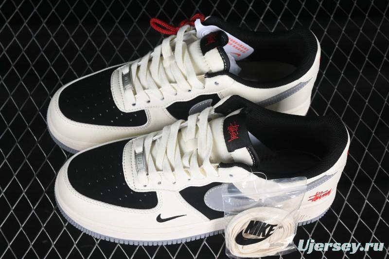 The Nike Air Force 1 '07 Low Stussy Collaboration combines premium custom leather with 3M reflective details, delivering a perfect blend of style and functionality. Ideal for casual wear, this sneaker features the original last and paper pattern for an authentic fit, along with a full-length air cushion for all-day comfort. The clean and flawless finish makes it a must-have for sneaker enthusiasts.\n\n**Key Features**:\n- Custom leather upper for a premium look and feel.\n- 3M reflective elements for enhanced visibility in low-light conditions.\n- Original last and paper pattern ensure a true-to-size fit.\n- Full-length air cushion provides superior comfort and support.