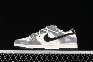Nike SB Dunk Low Stussy Collaboration - Embroidered Grey Swoosh Anniversary Custom Low-Top Casual Sneakers - MM1089-033